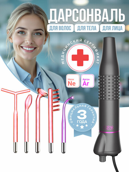 Физиотерапевтический аппарат дарсонваль – незаменимый помощник для всей семьи. Он обладает бактерицидным действием и эффективен для прижигания сосудов, гнойничков, воспалительных элементов на коже. Дарсонваль используют для лечения перхоти, профилактики выпадения волос, заболеваний мышц и даже целлюлита. Аппарат для дарсонвализации поможет при варикозном расширении вен, мигрени, невралгии и артрите. Прибор имеет медицинское регистрационное удостоверение и подходит для применения в косметологических кабинетах и медицинских учреждениях. Аппарат для физиотерапии DARS отличается от аналогов тем, что использует преимущества сразу 2 типов инертного газа: антибактериальный и противовоспалительный эффект аргона и стимулирующий кровообращение эффект неона. В комплекте входят 5 электродов: расческа для лечения волосистой части головы, капля для точечного воздействия на зоны воспаления, грибок и вилка для больших участков тела и ложка для лица и декольте. Физиотерапия для всей семьи Дарсонваль обладает бактерицидным действием и эффективен для прижигания сосудов, гнойничков, воспалительных элементов на коже. Также его используют для лечения перхоти, профилактики выпадения волос, заболеваний мышц и даже целлюлита. Аппарат поможет при варикозном расширении вен, мигрени, невралгии, артрите, остеохондроза и радикулите. Специальная насадка для лица и декольте Аппарат для физиотерапии DARS укомплектован специальной насадкой-электродом «Ложка» для активации обменных процессов в коже и тонизирующего массажа лица и декольте. Медицинское удостоверение Прибор прошёл клинические испытания и имеет медицинское регистрационное удостоверение. Аппарат можно использовать в косметологических кабинетах и медицинских учреждениях. 5 электродов для разных зон лица и тела Помимо «Ложки» для лица и декольте, в комплект входит универсальный электрод для уходовых процедур по всему телу «Грибок», Т-образная насадка «Вилка» для больших участков тела, «Капля» для точечного воздействия на зоны воспаления и электрод «Расческа» для лечения волосистой части головы.