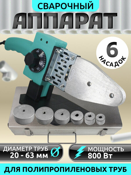 Паяльник для ПВХ предназначен для контактной сварки труб различного диаметра, изготовленных из полимерных материалов. Нагревательный элемент позволяет одновременно крепить на нем 2 пары насадок разного диаметра, что позволяет экономить время на перестановке насадок при сварке. Индикатор подключения к сети и контроля температуры. Благодаря обрезиненной рукоятке можно легко и безопасно управлять аппаратом. Аппарат надежно фиксируется на подставке. Технические характеристики: Регулировка температуры. 6 насадок с антипригарным покрытием в комплекте. Металлический кейс для хранения и транспортировки; Мощность 800 Вт; Напряжение 220 Вольт; Макс. диаметр трубы 63 мм; Мин. диаметр трубы 20 мм; Макс. температура 300°C.