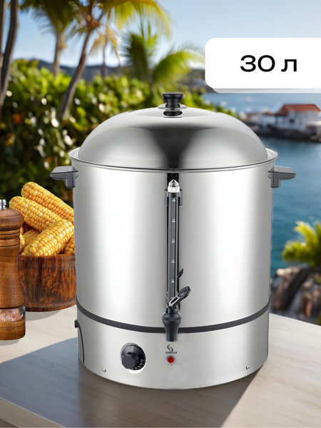 Аппарат для кукурузы AIRHOT CS-30 предназначен для быстрого приготовления початков кукурузы на пару. Кукурузоварка оснащена регулируемым термостатом (30-110°C), может работать в режиме варки и подогрева готового продукта. Пароварка для кукурузы отличается большой вместительностью и высокой мощностью. Объем ёмкости 30л, мощность 2000 Вт. В комплект входит разделитель внутренней ёмкости: можно одновременно готовить кукурузу в початках и зёрна. Куполообразная крышка аппарата позволяет накапливать аппетитные ароматы вареной кукурузы, которые так привлекают покупателей в парках, на фудкортах. Характеристики:
