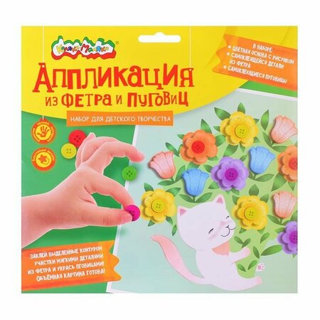 Достоинства:Внучке 4 года, ей очень понравилась аппликация. Самостоятельно наклеила все детали. Подарила на праздник мамочке. Комментарий:Рекомендую, от 3х лет.