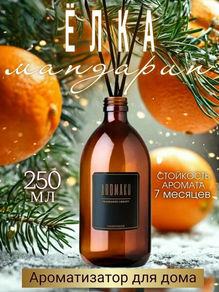 Сочетание хвойного запаха ёлки и мандаринов вызывает непреодолимое желание попасть в новогоднюю сказку. Вдыхая аромат елки и цитрусов в памяти возникают образы праздника – Нового года. Свежий, насыщенный и яркий запах. Флакон из темного стекла и фибровыми палочками в комплекте позволяет легко и быстро установить аромат в помещении. Просто добавьте несколько палочек во флакон и наслаждайтесь нежным и ароматным шлейфом, который будет радовать вас на протяжении нескольких месяцев. Ароматический диффузор подойдет для использования как дома, так и в коммерческих помещениях, таких как офисы, гостиницы, салоны красоты и клиники. Он имеет высокую стойкость и яркий, но нежный аромат, который не оставит равнодушным никого. Кроме того, диффузор - это прекрасный подарок на любой праздник, который обязательно порадует ваших близких и создаст уютную атмосферу в доме. Масла премиального качества. Попробуйте другие ароматы из коллекции AromaKo и выберите тот, который станет визитной карточкой вашего дома!