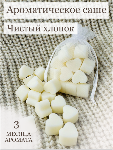 Набор саше для белья включает 20 миниатюрных ароматических саше, созданных из 100% натурального соевого воска. Каждое саше наполнено нежным и натуральным ароматом, который наполняет ваш дом свежестью и помогает сохранять чистоту и уют вашей одежды. В комплект входит элегантный мешочек из органзы и стильная подарочная коробка — идеальный выбор для подарка близким и любимым. В дополнение к этому мы кладем дополнительный мешочек из органзы и открытку, чтобы вы могли персонализировать подарок или использовать их для хранения мелочей. Наслаждайтесь ощущением свежести и приятного аромата каждый день с этим утонченным набором! Аромат «Хлопок» сочетает в себе нотки лимона и цитруса, цветы лилии, мускуса создавая уникальную изысканную атмосферу в Вашем доме.