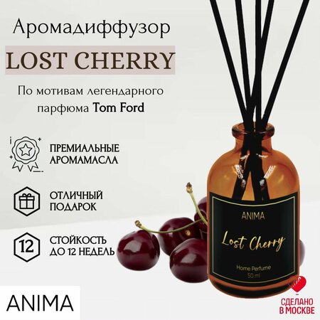Ароматический диффузор Lost Cherry от ANIMA - это магия восточных и фруктовых аккордов по мотивам легендарного парфюма Tom Ford (Том Форд). Верхние ноты черешни и масла горького миндаля пробуждают чувства. Средние ноты вишневого сиропа, розы и ликера придают аромату элегантности. Базовые ноты перуанского бальзама, обжаренных бобов тонка, ванили, корицы и кедра звучат лаконично и притягательно. Интерьерный диффузор от ANIMA включает стеклянный флакон с парфюмерной композицией и ротанговые палочки (5шт), которые, благодаря пористой поверхности, наполняют пространство ароматом и гармонией. Инструкция по применению: - Откройте упаковку аромадиффузора; - Достаньте флакон и палочки; - Снимите крышку флакона; - Поместите 3 палочки во флакон с парфюмерной композицией, переверните через 20 минут; - Для усиления аромата увеличьте количество палочек; - Для поддержания аромата в помещении, переворачивайте палочки 1-2 раза в неделю. Каждый продукт ANIMA - это многогранный аромат, обладающий своим характером. Мы используем только натуральные ингредиенты, сертифицированные и не тестируемые на животных. Ароматические средства от ANIMA заботятся о о вашем здоровье и окружающей среде и дарят красоту и вдохновение! Ароматический диффузор прекрасно подойдёт как для дома, квартиры или ванной комнаты, так и для офиса, гостиницы, салона красоты или SPA-центра. Парфюмированная композиция одинаково гармонично будет смотреться и в вашей гостиной, и на прикроватном столике в спальне. Ароматический диффузор станет прекрасным подарком на день рождения, новый год, новоселье, 14 февраля, 23 февраля, 8 марта, годовщину или другое торжество. Он подойдет в качестве презента как мужчине, так и женщине, как коллеге, так и близкому и дорогому человеку. Используйте ароматизатор для дома строго по назначению. Не употребляйте внутрь, берегите от детей и домашних животных, избегайте попадания масла в глаза.