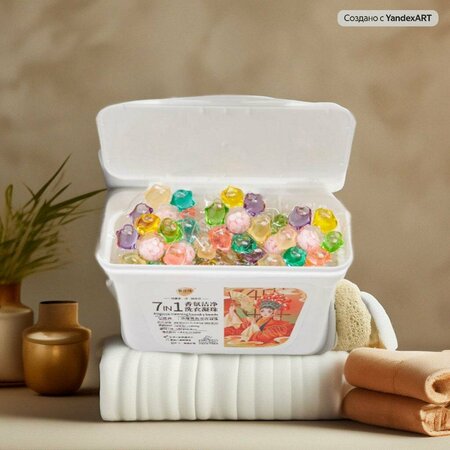 Ароматические капсулы-бусины для стирки 7 в 1 от Mu Shichun - это высококачественный продукт, который сочетает в себе эффективность и безопасность. Изготовленные из отличных ингредиентов, они проникают в волокна ткани и эффективно очищают пятна. Особенностью этих капсул является их аромат. Стойкий цветочный аромат обеспечивает свежесть на целый день, а также удаляет неприятные запахи и делает одежду уникальной. Капсулы-бусины обладают рядом преимуществ. Они не содержат фосфора, что делает их безопасными для окружающей среды. Кроме того, они гипоаллергенны и подходят для детского белья. Благодаря гранулам, капсулы обладают хорошей растворимостью в воде при комнатной температуре, что позволяет им эффективно действовать даже при низкой температуре зимой. Компактный размер капсул делает их удобными для путешествий. Способ применения прост: перед стиркой одежды выберите любимые капсулы и бросьте их прямо в стиральную машину. Затем добавьте одежду и включите обычный режим стирки. При стирке одежды вручную положите одежду в ведро и пропитайте ее в течение 30 минут, затем вылейте несколько капсул во время процесса замачивания. В комплекте с капсулами идет пластиковый контейнер с крышкой, внутри которого находятся капсулы с 7 отсеками с жидким лосьоном для стирки. Состав капсул включает кондиционер для белья, ПАВ и безфосфорный смягчитель для воды. При попадании в глаза, необходимо незамедлительно промыть их водой.
