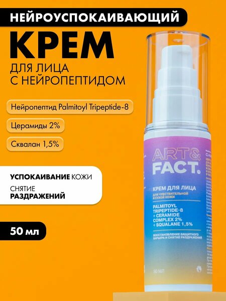 ART&FACT./ Нейро успокаивающий крем для лица с пептидом Neutrazen 1%, церамидами 2% и скваланом 1,5% для сухой и нормальной кожи в чувствительном состоянии, 50 мл