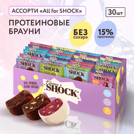 Протеиновое печенье ассорти с 10 бесподобными вкусами Горячий шоколад, Кокосовый пирог, Банан, Ягодный микс, Черника, Малина, Манго, Ромовая баба, Белый шоколад и фисташка и с ароматом печенья, с обволакивающимся белым и молочным шоколадом. Все ПП брауни от FitnesSHOCK в ассорти, идеально подходит для всех, кто уделяет внимание своей фигуре и придерживается здорового образа жизни и диетического питания. Подарите магию вкуса с помощью подарочного набора десертов без сахара от российского бренда FitnesShock. Яркие, стильно упакованные боксы с лакомствами станут отличной альтернативой обычным сладким подаркам. Такой полезный бокс станет идеальным решением для тех, кто ценит не только вкус, но и заботу о здоровье. Подарочный набор вкусняшек, станет отличным сюрпризом на День Рождения и любой другой праздник. Сладости можно вручить, как самостоятельный подарок, так и вложить, как дополнение, чтобы порадовать родных и близких полезными лакомствами. Создайте волшебный момент радости и удивите своих близких не только оригинальностью, но и заботой! Протеиновое печенье Fitness SHOCK - это бархатистый бисквит с кусочками белого шоколада, которое обладает по настоящему изысканным вкусом. Такие сладости без сахара - идеальный вариант для похудения, для тех кто любит сладкое, но придерживается пп питания. Печенье без сахара и муки, в составе только качественный сывороточный протеин, что позволяет получить максимум белка и пользы. Протеиновое пирожное, подходит для тех, кто предпочитает пп сладости, соблюдает питание для похудения или спортивное питание. Полезные сладости без сахара намного полезнее, чем привычные шоколадки, панкейки, печенье и карамель. Бисквитное лакомство печенье в коробках, окутанное в белый шоколад – это полезный перекус на учебе, работе, в путешествии, в дороге, на прогулке, после занятия спортом или для набора веса. Наши полезные пп сладости без сахара и десерты без сахара не содержат сахара и муки, в составе только полезные подсластители: растительные стевия и эритрит. А натуральный протеин в составе делает продукт вкусным и питательным. Преобретая сладости без сахара FitnesSHOCK вы выбираете наслаждение вкусными десертами без вреда для здоровья и стройной фигуры. Сладкое может быть полезным!