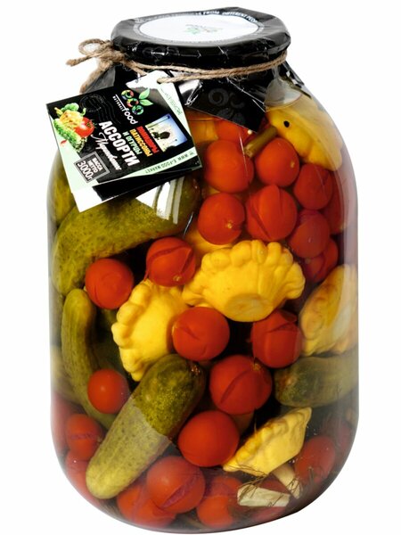 Достоинства:вкусно! товар пришел хорошо упакован и вовремя. Недостатки:нет Комментарий:очень вкусное ассорти. и огурцы ,и помидорки ,и патиссоны ровненькие ,без изъянов,как домашнего приготовления . напоминает 5 л. соления фирмы " Глобус" ( Болгария или Венгрия - забыла уже). умеренное содержание уксуса и соли. зелени достаточно и всё в рассоле чувствуется. советую.