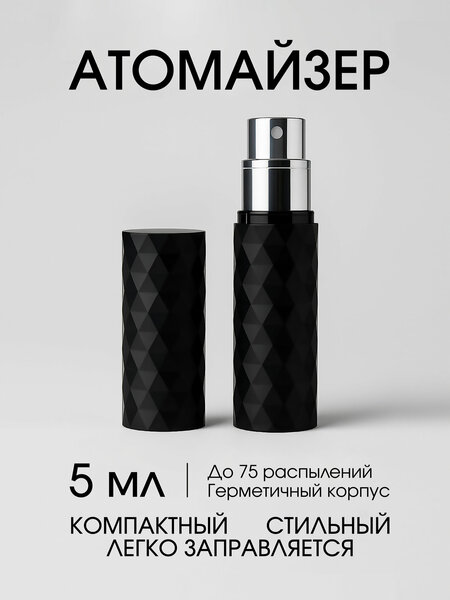 Атомайзер для духов 5 мл чёрный ромбовидный — это стильный и удобный флакон с распылителем, который идеально подойдёт для хранения и использования парфюма, туалетной воды, антисептика или любого другого ароматического средства. Такой дорожный флакон с помпой станет незаменимым аксессуаром для тех, кто ценит комфорт и мобильность. Атомайзер для духов, атомайзер для парфюма и распылитель для духов помогают легко переносить любимый аромат, не таская с собой большие флаконы. Компактный размер и универсальный дизайн делают этот пульверизатор удобным как для женщин, так и для мужчин. Атомайзер для духов 5 мл в чёрном цвете подойдёт для путешествий, работы или повседневного использования, а также станет отличным подарком для ценителей парфюмерии. Этот флакон для духов с распылителем изготовлен из прочного пластика, что обеспечивает лёгкость и долговечность. Чёрный ромбовидный корпус выглядит стильно и современно, а небольшой вес делает его идеальным дорожным флаконом. Дозатор для духов равномерно распределяет аромат, а надёжная помпа предотвращает утечку жидкости. Вы можете использовать атомайзер для духов набором, заполняя несколько таких флаконов разными ароматами, или носить один — с любимым парфюмом. Он подойдёт как для парфюма, так и для туалетной воды, а также для антисептика или дезинфицирующего раствора. Благодаря удобному распылителю для парфюма вы сможете освежиться в любой момент. Компактный объём 5 мл рассчитан примерно на 60–80 распылений, чего достаточно для нескольких недель использования. Такой флакон с помпой легко помещается в карман, сумочку или косметичку. Заправка осуществляется через встроенный клапан или с помощью миниворонки — быстро и без проливаний. Если вам нужен атомайзер для духов 10 мл, вы можете собрать набор из двух чёрных флаконов по 5 мл. Это даст возможность разделить ароматы на дневной и вечерний, а также всегда иметь под рукой запас. Атомайзер для духов 5 мл подойдёт для людей, ведущих активный образ жизни: путешественников, спортсменов, офисных работников. Он идеально впишется в набор аксессуаров для ухода за собой. Чёрный цвет и ромбовидная форма придают флакону изысканный внешний вид, а материал корпуса защищает содержимое от солнечного света, продлевая свежесть аромата. Используя наш пульверизатор, вы сможете дозировать количество аромата, избегая перерасхода. Распылитель для духов создаёт мягкое и равномерное облако, раскрывающее аромат так, как задумал парфюмер. Такой дозатор для духов — это практичное и стильное решение для любого, кто любит носить свой аромат с собой. Чёрный атомайзер для духов от Home Essential — компактный, лёгкий, многофункциональный аксессуар, который сделает использование парфюма, туалетной воды или антисептика максимально удобным. Он подойдёт для личного пользования и в качестве подарка. Стильный внешний вид, удобство дозировки и универсальность применения делают его отличным выбором для всех, кто ценит практичность и эстетику в мелочах.