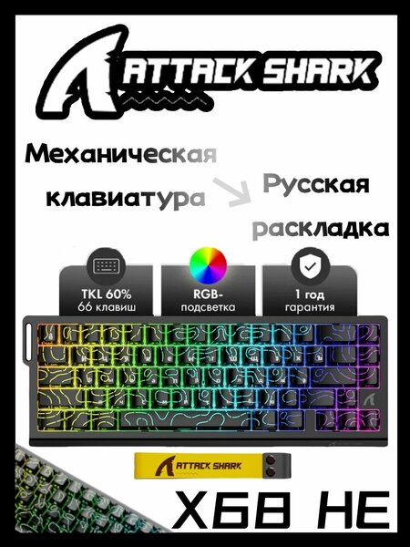 Attack Shark X68he Механическая клавиатура 68 клавиш, Русская раскладка, black contour line, Magnetic Switch