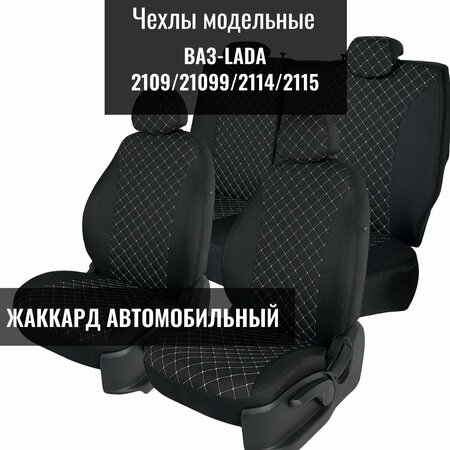 Авточехлы модельные для ВАЗ, лада 2114/ 2115/ 2109/ 21099 Изготовлены из высококачественного автомобильного жаккарда. Чехлы пошиты по форме сидения (эффект перетяжки). Качественные лекала обеспечивают качественную посадку без складок и волн (при соблюдении правил установки) В спинках передних сидений имеются карманы на молнии. Компания TrendAuto уже более 10 лет производит чехлы на автомобили и успела зарекомендовать себя на рынке как, высокое качество по доступной цене. Оригинальный дизайн чехлов выполнен из высококачественных материалов: Жаккард-износостойкий материал обеспечит комфортное использование в холодную и жаркую погоду. -Антивандальный -Простой в уборке -Стойкий к ультрафиолету -Летом не жарко, зимой не холодно -Не мешает работе подогрева сидений -Не трескается -Легкий уход Комплект чехлов состоит из 10 изделий. Спинка передние-2, сиденья передние-2, спинка задняя-1, сиденье заднее-1, подголовники-4. *Так, как не у всех есть задние подголовники-отверстия нужно будет сделать самостоятельно.