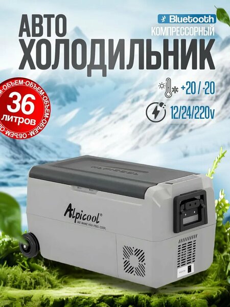 Компрессорный автохолодильник Alpicool T36 объемом 36 л представляет собой компактное устройство с двумя камерами охлаждения, разделенными съемной перегородкой. Модель снабжена колесиками, телескопической и боковыми ручками для удобства перемещения, герметично закрывающейся крышкой, несложной панелью управления с ярким дисплеем и USB-портом. Корпус выполнен из прочного пластика, надежно защищающего компрессор и внутренние камеры от повреждений при езде по неровному дорожному покрытию и экстренных торможениях. Доступна функция установки в отсеках разных температурных режимов. Удаление перегородки позволяет увеличить объем внутреннего пространства и установить единую температуру.