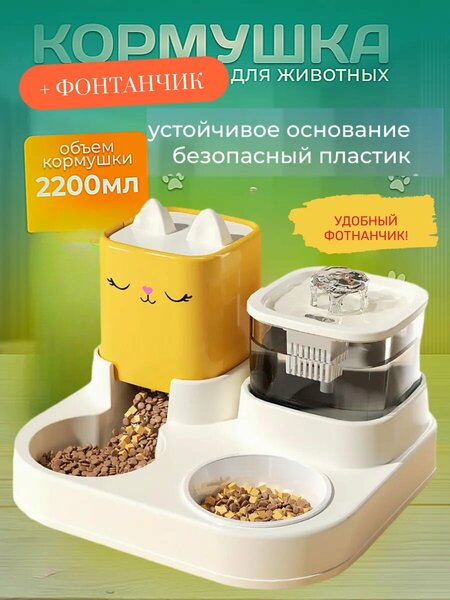 Кормушка и поилка фонтан для кошек и собак с фильтром 3 в 1: сухой и влажный корм + фонтан поилка для кошек и собак Ищете универсальное решение для заботы о питомце? Эта автоматическая кормушка для кошек и собак — идеальный вариант! Подходит для подачи сухого и влажного корма, а встроенный фонтанчик-поилка с фильтрацией обеспечивает питомца свежей и чистой водой 24/7. Особенности и преимущества: • Кормушка автоматическая с двумя отдельными отсеками: для сухого и влажного корма. • Фонтанчик с фильтрацией — настоящая находка для животных, которые любят проточную воду. Объем воды 1500 мл • Подходит как автокормушка для котов, так и автокормушка для собак. • Идеальное решение для занятых хозяев — питомец будет сыт и доволен даже в ваше отсутствие. • Можно использовать как автоматическую поилку, кормушку для грызунов или миску с автопоилкой для кошек. Дополнительно: • Вместительный контейнер для сухого корма на 2200 мл • Удобная кормушка с отсеком для влажного корма для котят и взрослых питомцев. • Безопасные материалы и простая в уходе конструкция. • Компактный дизайн, подходящий для любого интерьера. Заменит сразу несколько аксессуаров: миску, поилку, дозатор для корма, авто поилку, кормушку для влажного корма и даже контейнер для кошачьего корма. Позаботьтесь о любимце — выберите умную автокормушку 3 в 1: кормушка, поилка и фонтанчик в одном устройстве! Длина провода 145 см