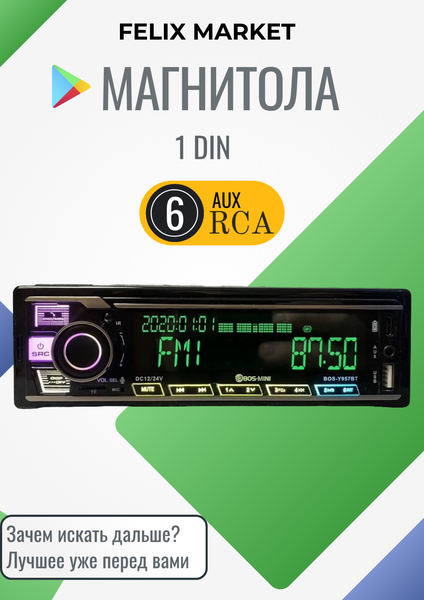 Автомагнитола 1din BOS-MINI BOS-Y957DBT 12-24V - это современное и функциональное устройство, которое станет незаменимым помощником в дороге. Модель оснащена Bluetooth, что позволяет подключать к ней смартфон или другое устройство без проводов и наслаждаться любимой музыкой. Функция hands-free позволяет оставаться на связи, не отвлекаясь от управления автомобилем. Устройство поддерживает воспроизведение музыкальных файлов с USB-накопителей и SD-карт, что значительно увеличивает возможности для прослушивания музыки. Благодаря входу AUX вы сможете подключить к автомагнитоле другие устройства через стандартный аудиокабель. Автомагнитола оснащена FM-радио с функцией автопоиска, что позволяет наслаждаться любимыми радиостанциями. Управление автомагнитолой интуитивно понятно благодаря яркому и удобному дисплею. Дополнительные настройки эквалайзера позволят настроить звук по вашему вкусу. В комплекте с автомагнитолой идут два пульта управления, пульт на руль, дистанционный пульт, инструкция и все необходимое для подключения. Магнитола 1 din BOS-MINI Y957DBT - это великолепное решение для автомобиля, сочетающее в себе высокое качество звука и передовые технологии. Она станет надежным спутником в дороге и обеспечит комфортное прослушивание музыки. ✅Универсальные 12v-24v ✅Bluetooth ✅Type-C, USB, Aux, SD слоты ✅Цветной экран ✅Радиатор охлаждения ✅6 выходов RCA ✅Простой пульт, пульт на руль и провода для подключения в комплекте магнитола автомобильная; автомагнитола; магнитола; автомагнитола 1 din; магнитола 1 din; автомагнитолы