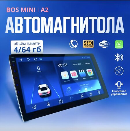 Автомагнитола BOS-MINI А2 4/64ГБ 9 дюймов на базе Андроид: Мультимедиа система, чистый звук, глубокие басы Автомагнитола BOS-MINI А2 4/64ГБ 9 дюймов на базе Андроид представляет собой уникальное устройство, которое превратит вашу поездку в настоящий кинотеатр. Благодаря высококачественному 9-дюймовому экрану, магнитола позволяет просматривать любые видеофайлы, фото и слушать музыку из USB-накопителей, SD-карт или с помощью Bluetooth подключения. Регулировка звука в реальном времени, включая баланс и тембр, позволяет настроить звуковую среду в соответствии с вашими желаниями. Магнитола BOS-MINI А2 2 din с экраном оснащена множеством функций, которые делают ее использование еще удобнее и комфортнее. Через Bluetooth вы можете прослушивать музыку с вашего смартфона, проводить голосовые и видео звонки или подключаться к другим устройствам. Дополнительно вы можете подключить мини-сабвуфер для большего звукового эффекта. Оптимальные параметры памяти 4/64. Полноценный андроид, в плэймаркет можно скачивать приложения (YouTube, 2ГИС, Яндекс-пробки и др). Хорошо воспроизводит звук через блютуз, флешки. Благодаря большому экрану удобно смотреть видео! Характеристики: - Андройд 12 - Оперативная память 4GB - Внутренняя память 64GB - Дисплей с матрицей IPS 1024x600 - 2,5D защитное стекло - 4-ех ядерный процессор 1300МГц - Широкополосный эквалайзер - Качественный звук RCA выходы - Поддержка камеры заднего вида - Поддержка камеры переднего вида - Поддержка AHD камеры (высокого разрешения) - Поддержка кнопок на руле Комплектация: - USB кабель - 2 шт; - Провод подключения питания (без разъема) - 1 шт; - Провод подключения камеры заднего вида - 1 шт; - Аудио-видеовыходы - 1 шт; - GPS модуль - 1 шт. Подходит для каждого автомобиля через переходные рамки.