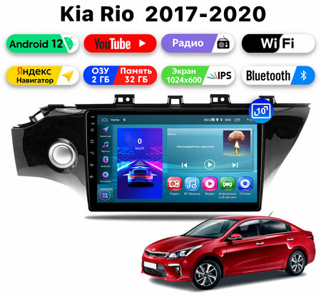 Автомагнитола для Kia Rio 4 (2017-2019), Android 11, 2/32 Gb, Wi-Fi, Bluetooth, Hands Free, разделение экрана, поддержка кнопок на руле