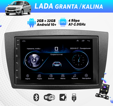 Штатная магнитола - комплект для LADA Granta (2013-2017), Kalina (2013-2018) с магнитолой на платформе Android. Полная совместимость с автомобилем, за счет чего можно пользоваться всеми штатными функциями предусмотренными производителем авто. Многофункциональная магнитола на Android позволяет скачивать все доступные приложения с Play Market. На автомагнитоле по умолчанию установлен Google Chrome. Можно установить навигатор, Яндекс пробки, игры и дополнительные программы. У данной модели 4 ядра, что позволяет комфортно использовать многие приложения на магнитоле. Предусмотрены 2 USB провода, один из которых можно использовать под зарядку мобильного устройства. GPS антенна позволит без подключения к интернету использовать скаченный или встроенный навигатор. Также в комплекте идет камера заднего вида в подарок. преимущества: Операционная система Android 10.0 GPS Wi-Fi MirrorLink Bluetooth Поддерживает управление с руля Разрешение WSVGA (600p) Камера заднего вида включается при заднем ходе (в подарок) Макс. мощность (Вт): 4 x 45 USB х 2 с возможностью зарядки мобильного устройства FM радио (87.5-108 мГц) Поддерживает все современные форматы аудио и видео Синхронизация контактов с телефоном Поддержка языков: русский, английский и т. д. Регулировка яркости с автоматической настройкой характеристики: Основные: Операционная система: Android Оперативная память (Гб): 3 Встроенная память (Гб): 32 Процессор: A7 1.3GHz x 4 Чип: 8227 l-demo Разрешение экрана (px): 1024х600 Диагональ экрана (дюйм): 9 Звук: Максимальная выходная мощность (Вт): 4х60 Диапазон воспроизводимых частот (Гц): 20-20000 Выходы, разъемы: USB разъем х 2 GPS антенна ANT (антенна) RCA разъемы (AUX, SUB, VIDEO OUT, AUDIO, CVBS-IN-1/2) Поддержка: Поддерживаемые носители: USB Поддерживаемые форматы: MP3, WMA, WMV, OGG, APE, ACC, FLAC, RMVB, RM, FLV, 3GP, MPEG, DVIX, XVID, DTA, VOB, AVI и др. Версия Bluetooth: 4.0 Дополнительно: Размер магнитолы (мм): 178х102 Пароль сброса настроек до заводских: 8888 Пароль для входа в расширенные настройки: 0000 (или 1234 или 123456)