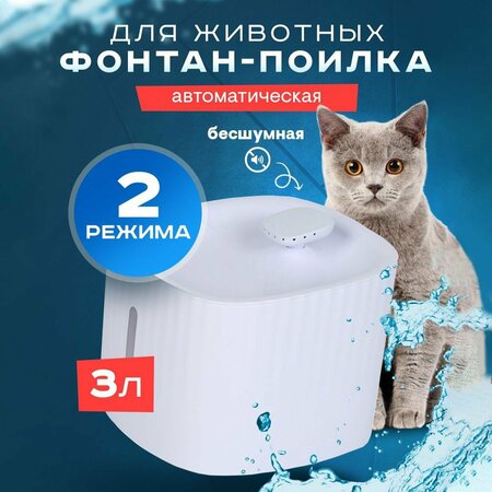 Фонтан питьевой поилка автоматическая для кошек и собак зоотовары для животных фонтанчик поильник Питьевой фонтан для кошек и собак вместимостью 3 л обеспечит животных той водой в течение 5-ти дней и более (автоматическая подача воды). Не нужно следить за поильником и пополнять его водой. Если вы уезжаете и оставляете домашнее животное дома, поилка автоматическая выручит! Поилка для собак может работать, водяной насос датчик постоянно циркулирует воду. Надежная конструкция поилки не опрокидывается, тихая, не спугнет и самого осторожного кота. Это отличный аксессуар для кормления. Поскольку основное кормление питомцев - сухой корм, они всегда нуждаются в большом объеме жидкости. Экономичная автопоилка работает от электрического питания. Дорожную поилку автоматическую можно брать в машину, переносной фонтанчик легко транспортировать. Это многофункциональный зоотовар для животных мелких и средних пород. Контейнер умная автокормушка миска, подойдет так же для попугаев, котов, щенков, птиц и грызунов или щенят, кроликов, хорьков, морских свинок. А так же крыс, мышей, дегу, хомяков и ежиков или шиншилл. Автоматическая питьевая кормушка для кошек - кран умный гаджет для домов с Вашими питомцами!