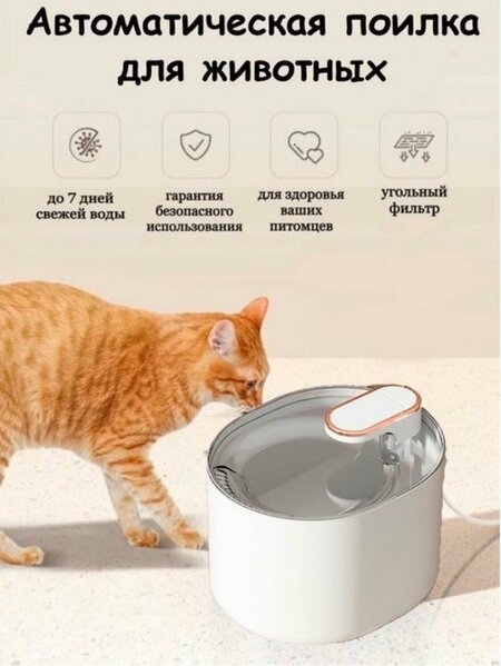Автоматическая поилка для кошек и собак с умной подсветкой приблизит жизнь вашего любимчика к натуральным условиям природы. Автопоилка для домашних животных - большая поилка-чаша с фонтаном 3 л из безопасного ABS пластика. Правильный питьевой режим - основа долголетия. Уникальный фонтан-поилка с системой регулярной подачи воды работает 24/7. Тихое, 16 дБ (тише, чем шуршат листья) струйное журчание поилки-чаши имитирует звук ручейка, не тревожит хозяев, привлекая питомца. Животное с удовольствием пьёт, восполняя водный баланс из питьевого фонтана в любое время дня и ночи. Авто диспенсер для подачи воды гарантирует профилактику мочевых камней. Бесшумный водяной фонтанчик с 4-слойным фильтром и воздушной аэрацией очищает воду от вредных примесей, запаха, насыщает кислородом, освежает, минерализует, улучшает вкус. Автоматическая кормушка для кошек и котов, собак для воды в лаконичном дизайне гармонично впишется у Вас дома. Питьевой фонтан - высший класс заботы о питомце и лучший подарок от любящих хозяев! Кормушка поилка отличное изобретение для домашних животных. Крышечка выполнена в виде миски для кошки.