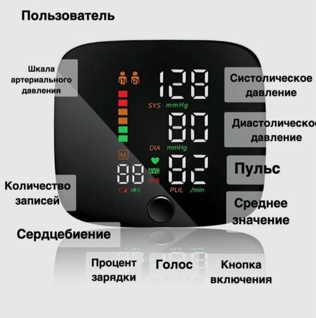 Автоматический тонометр INTELLI SYSTEM Версия 2.0 Хит продаж 2022. Цифровой автоматический тонометр на запястье-это современный аппарат для измерения артериального давления и пульса. Компактный цифровой тонометр можно взять с собой в любую поездку, в путешествие, на отдых, спортивные мероприятия, использовать на даче и дома. В комплект входит инструкция на русском языке, зарядное устройство, а также стильный, компактный кейс, который можно вместить в рюкзак, небольшую сумку или ручную кладь. Тонометр подходит для взрослых и детей. Универсальная манжета регулируется и подходит для любого размера запястья. В аппарат встроено голосовое оповещение на русском языке. Тонометр на запястье имеет стильный дизайн, читабельный цветной ЖК экран, индикатор заряда аккумулятора и опцию сбора данных. Питание осуществляется с помощью зарядного USB Type-C провода. Цифровой тонометр имеет встроенную память измерений. Прибор производит замеры без подключения к электричеству. Отличный подарок бабушке, дедушке, свекрови, папе, маме. Нас также ищут: автоматический тонометр, тонометр на запястье, цифровой тонометр. прибор для измерения артериального давления. Внимание! Зарядное устройство в комплект не входит.