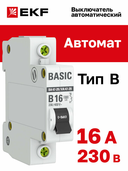 Автоматический выключатель ВА 47-29 Basic производства EKF представляет собой однополюсное защитное устройство с номинальным током 16А для однофазных сетей переменного тока. Данный автомат 16А однополюсный предназначен для защиты электрических цепей в жилых и общественных помещениях. Устройство монтируется в распределительные щиты и электрощитки, обеспечивая надежную защиту проводки и оборудования от аварийных режимов работы в сетях напряжением 230В. Автоматический выключатель эффективно защищает электрическую сеть от перегрузок и коротких замыканий, предотвращая возможные возгорания и выход из строя подключенного оборудования. Благодаря характеристике срабатывания типа B, устройство идеально подходит для защиты бытовых электроприборов, розеточных групп и стандартных осветительных цепей. Автомат позволяет безопасно отключать электропитание при проведении ремонтных или профилактических работ, обеспечивая безопасность обслуживающего персонала. Технические характеристики автоматического выключателя включают номинальный ток 16А и отключающую способность 4,5кА при номинальном напряжении 230В переменного тока. Устройство имеет компактные размеры и занимает всего 1 модуль на DIN-рейке 35 мм. Выключатель оснащен одной клавишей управления и имеет максимальное сечение подключаемых проводников до 25 мм². Автомат совместим как с медными, так и с алюминиевыми проводниками, при этом момент затяжки винтов строго регламентирован: не более 2,5 Н·м для медных и 2,2 Н·м для алюминиевых проводников. К уникальным преимуществам данной модели относится высокая надежность конструкции, подтвержденная соответствием ГОСТ IEC 60898-1, и длительный срок службы. Производитель предоставляет гарантию 3 года, что свидетельствует о высоком качестве изделия. Автомат оснащен эргономичной рукояткой управления с четкой индикацией положения контактов. Универсальность монтажа обеспечивается возможностью подключения питания с любой стороны выводов. Корпус выполнен из качественных материалов (пластик и металл), гарантирующих механическую прочность и долговечность. Оптимальное соотношение цены и качества делает этот автоматический выключатель отличным выбором для защиты однофазных электрических цепей стандартной мощности.
