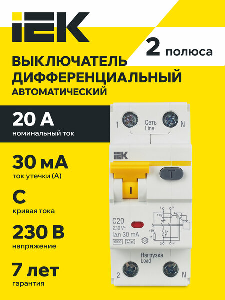 Автоматический выключатель дифференциального тока АВДТ32 C20 IEK - это надежное и эффективное устройство для защиты электроустановок от повреждений, перегрузки и короткого замыкания. Этот продукт предназначен для обеспечения безопасности человека от поражения электрическим током, предотвращения пожаров вследствие протекания токов утечки на землю и защиты от перегрузки и короткого замыкания. Автоматические выключатели АВДТ32 C20 IEK рекомендуются для защиты групповых линий, питающих розетки наружной установки, розетки и освещение подвалов и гаражей. Устройство имеет два полюса и тип расцепления C, что обеспечивает быстрое и надежное отключение питания в случае возникновения аварийной ситуации. Класс защиты IP20 гарантирует защиту от попадания твердых предметов размером более 12 мм и от проникновения воды, что делает его подходящим для использования внутри помещений. Номинальный ток автоматического выключателя составляет 63 А, что позволяет использовать его для защиты электроустановок различного типа и мощности. Выбирая автоматический выключатель дифференциального тока АВДТ32 C20 IEK, вы получаете надежное и эффективное решение для защиты вашей электроустановки от повреждений, перегрузки и короткого замыкания.