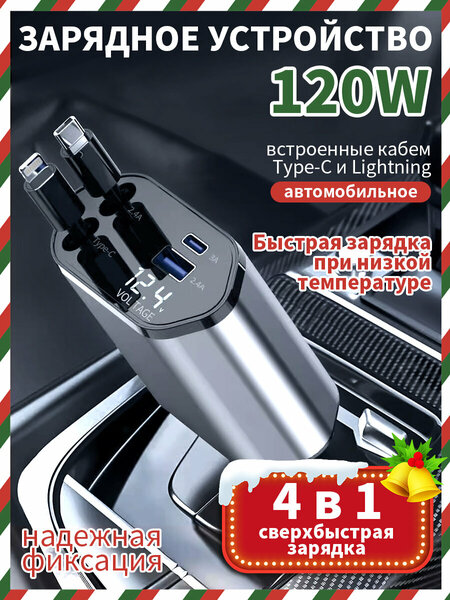 Автомобильное зарядное устройство с встроенным кабелем Это зарядное устройство оснащено выдвижным кабелем Type-C и Lightning, что позволяет удобно заряжать как устройства на Android, так и на iOS. Быстрая зарядка 120W — заряжайте ваши устройства в два раза быстрее Одновременная зарядка двух устройств — поддерживает быструю зарядку для двух устройств одновременно Широкий диапазон напряжений (12-24V) — подходит для легковых автомобилей, внедорожников и грузовиков Телескопический кабель — встроенные выдвижные кабели Type-C и Lightning для удобства и порядка Совместимость с несколькими устройствами — подходит как для Android, так и для Apple устройств