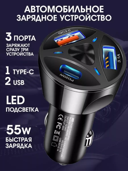 Автомобильная зарядка PD 20W + QC 3.0 — мощность и универсальность в одном устройстве! Быстрая зарядка двух устройств одновременно: благодаря разъёмам Type-C (PD 20W) и USB QC 3.0 (3.1A) вы можете заряжать смартфон, планшет или другие гаджеты без задержек. Компактный и стильный дизайн идеально вписывается в интерьер автомобиля. Просто подключите — и устройство готово к работе! ✅ Подходит для всех типов автомобилей и совместимо с Android и iPhone. Преимущества: