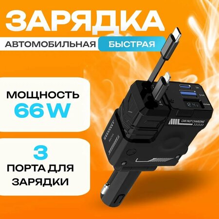 Автомобильное зарядное устройство 4 в 1 Charging A1 - это многофункциональный аксессуар, который станет незаменимым помощником в дороге. Зарядное устройство оснащено четырьмя различными разъемами, что позволяет одновременно заряжать несколько устройств. Это особенно удобно в длительных поездках, когда необходимо заряжать сразу несколько гаджетов. В комплекте кабель USB Type C для Android и Apple Lightning для iPhone. Устройство выполнено в стильном черном цвете, который легко впишется в интерьер любого автомобиля. Зарядное устройство Charging A1 оснащено функцией быстрой зарядки, что позволяет экономить время и энергию. Благодаря этому, вы сможете быстро зарядить свои устройства, когда это необходимо. Выбирая автомобильное зарядное устройство 4 в 1 Charging A1, вы получаете надежный и функциональный аксессуар, который поможет вам всегда оставаться на связи и быть готовым к любым дорожным ситуациям. Сфера применения: Длительные поездки и путешествия: Идеально для быстрой зарядки устройств во время долгих поездок и путешествий, поддерживая ваши гаджеты в рабочем состоянии. Повседневные поездки: Подходит для зарядки смартфонов и планшетов в ходе ежедневных поездок, обеспечивая постоянный заряд устройства. Современные устройства: Эффективна для зарядки устройств с поддержкой быстрой зарядки и USB-C, таких как смартфоны, планшеты и ноутбуки. Автомобили разных типов: Подходит для легковых автомобилей, внедорожников и грузовиков благодаря универсальному входному напряжению и длинному кабелю. Контроль электроники: Встроенный датчик напряжения помогает отслеживать состояние аккумулятора автомобиля и предотвращать проблемы с зарядкой. Подарки и аксессуары: Отличный подарок для путешественников и стильное дополнение к любому автомобилю.