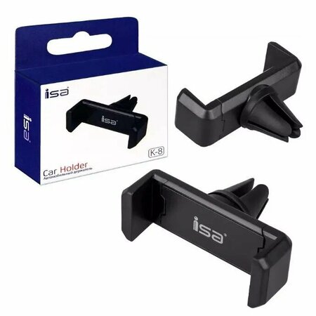 Автомобильный держатель для мобильных телефонов ISA K-8 позволяет закрепить устройство на вентиляционной решетке приборной панели. Минимальный размер, впишется в интерьер любого авто. Не мешает обзору: чистое торпедо, чистое лобовое стекло. Ваш смартфон не упадёт на неровной дороге или кочках. Фиксация и снятие смартфона одной рукой за секунду! Подходит для крепления смартфонов с диагональю 3,5" - 6". Ширина держателя: от 55 до 85 мм Возможность поворота вашего устройства на 360 градусов Возможность установки на вертикальные и горизонтальные вентиляционные решетки Не мешает обзору Идеален для путешествий