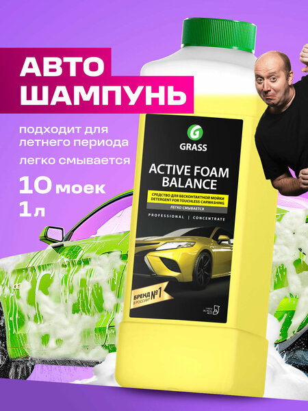 Автошампунь автохимия для бесконтактной мойки Grass Active Foam Balance 1 литр. Активная пена Грасс для бесконтактной мойки борется с грязью, следами от масла (антижир) и насекомых, подходит для очистки дисков, стекол, пластика и металла. Авто химия для автомобиля замедляет коррозию на кузове авто и предотвращает ржавчину. Авто шампунь для бесконтактный мойки легковых машин, грузовиков, автотранспорта подходит, как для автомойки, так и для личного использования. Пена для автомобиля (бесконтактной мойки) - профессиональный шампунь автомобильный легковых машин, грузовиков, автотранспорта, подходит для использования в домашних условиях и МСО. Этот продукт подходит, как средство для мытья и мототранспорта. Бесконтактный автошампунь 1 л справится с загрязнениями после дождя и оставит блеск и сияние вашего автомобиля на долгий срок. Наша автохимия автокосметика для ухода за автомобилем грасс- прекрасный вариант на подарок. После мойки рекомендуется использовать воск, полироль и антидождь. Профессиональная химия для мойки не портит наклейки на автомобиле. Способ применения: 1. Перед нанесением средство необходимо разбавить с водой из расчета 1:1-1:2 (330-500 г) в пенокомплект (1л) или 1:20-1:30 (32-48 г/л) в пеногенератор, керхер (25,50,100 л), в зависимости от степени загрязнения. 2. Остудить кузов автомобиля. При необходимости сбить верхний слой грязи, после чего нанести разбавленный состав снизу вверх, чтобы избежать подтеков. 3. Выдержать 1-2 мин. не допуская высыхания! 4. Тщательно смыть водой под высоким давлением с близкого расстояния (15-20 см) снизу вверх