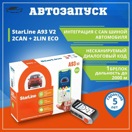 Характеристики StarLine A93 V2 2CAN+2LIN ECO Надежная защита диалоговая защита Диалоговый код управления StarLine c индивидуальными ключами шифрования 128 бит гарантирует надежную защиту от всех известных кодграбберов защита от радиопомех StarLine уверенно работает в условиях экстремальных городских радиопомех, благодаря уникальному 128-канальному трансиверу SUPER SLAVE Управление охраной автомобиля штатным брелком с надежной дополнительной авторизацией по брелку StarLine расширенный диапазон температур StarLine уверенно работает в суровых климатических условиях при температуре от минус 50 до плюс 85 °С благодаря высококачественным комплектующим рекордная энергоэкономичность StarLine гарантирует сохранность достаточного заряда аккумулятора до 60 дней в режиме охраны благодаря использованию запатентованных технологий и программных решений контроль канала связи Автоматический контроль канала связи обеспечивает проверку нахождения брелка в зоне действия приемопередатчика охранного оборудования авторизация ПО pin-коду Дополнительная авторизация надежно защищает автомобиль от угона, усиливая охранные функции штатной сигнализации. Поездка возможна только после ввода индивидуального PIN-кода при помощи штатных кнопок автомобиля 3D датчик удара И наклона Интегрированный цифровой датчик удара и наклона с дистанционной настройкой регистрирует поддомкрачивание и эвакуацию транспортного средства невидимая блокировка iCAN гарантирует надежную защиту благодаря уникальной запатентованной технологии скрытой блокировки двигателя по штатным цифровым шинам автомобиля Удобный сервис телематика (опция) Интеграция опциональных GSM, gps-ГЛОНАСС телематических интерфейсов позволяет дистанционно управлять охраной вашего автомобиля и осуществлять мониторинг управление С телефона (опция) Интеграция опционального GSM-интерфейса позволяет управлять охранными и сервисными функциями, получать оповещения о статусе охраны на ваш мобильный телефон бесплатный мониторинг (опция) С помощью простого и удобного мониторинга starline.online вы сможете с точностью до нескольких метров узнать местонахождение своего транспортного средства. Опция доступна при подключении gps-ГЛОНАСС и наличии опционального GSM-интерфейса. автозапуск Интеллектуальный автозапуск позволяет осуществлять дистанционный и автоматический запуск двигателя по температуре, в заданное время или периодически 2CAN+2LIN Обеспечивает бережную установку и минимальное вмешательство в электронику автомобиля. Постоянно обновляемая библиотека 2CAN+2LIN протоколов содержит самый полный список автомобилей, продающихся на территории России и стран Содружества гибкие сервисные каналы Программируемые параметры управления аварийной световой сигнализацией, складыванием зеркал, настройкой сидений под владельца и многое другое ударопрочный брелок Брелок StarLine имеет инновационную, ударопрочную конструкцию, эргономичный дизайн и внутреннюю защищенную антенну умный бесключевой обход Экономьте на покупке дополнительного обходчика или дубликате ключа, необходимых для реализации функции автозапуска двигателя. StarLine iKey позволяет реализовать бесключевой обход штатного иммобилайзера и запуск двигателя по цифровым шинам CAN или LIN*