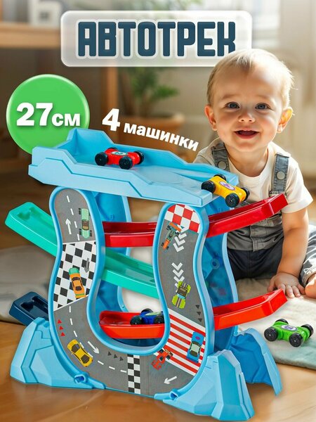 Детский автотрек с машинками — это игровой набор, который сочетает динамику гонок с развитием ключевых навыков у ребенка. Трек можно собирать в трех вариантах, что позволяет создавать уникальные трассы для игр. Компактные размеры (27х28х11,5см) делают его удобным для хранения и игры даже в небольшой комнате. Игрушка включает четыре ярких машинки-перевертыша. Просто разместите машинки на парковке, которая расположена на крыше, и наблюдайте, как они плавно скатываются вниз по уровням. Благодаря продуманной конструкции горка для машинок обеспечивает свободное движение без застревания, что делает игру увлекательной и легкой для детей младшего возраста. Игрушка помогает развивать: