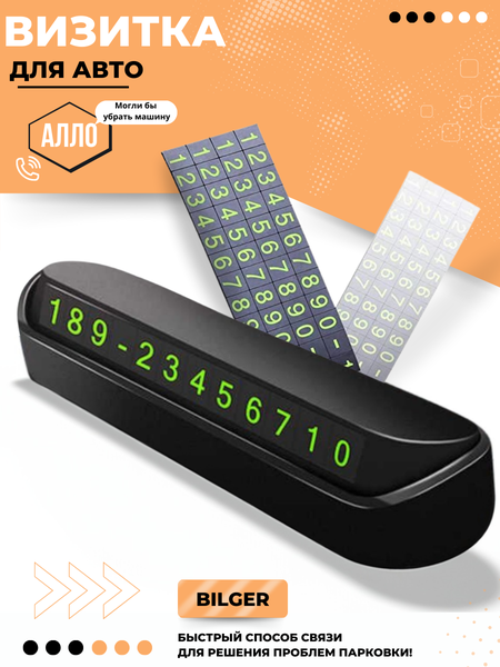 Парковочная автовизитка номер телефона, элегантный аксессуар с номером владельца автомобиля, всегда в вашем автомобиле на самом видном месте, аксессуары в машину для быстрой связи и решения вопросов с парковкой транспортного средства. Табличка с номером для парковки, крепится на торпеду автомобиля под лобовым стеклом с помощью клейкого покрытия двухсторонний скотч. Удобная и стильная авто визитка номер в машину, очень полезна и проста в использовании. Укомплектована набором магнитных пластин из 40 цифр из которых автовладелец самостоятельно набирает свой контактный номер. Цифры изготовлены из натурального светящегося материала, поглощают солнечный свет днем и светятся в темноте. Есть 4 полосы от 0 до 9 карта с магнитными светящими номерами, вы можете свободно составлять свой собственный номер мобильного. Просто нажмите крышку, чтобы переключиться на отображение или скрытие, что помогает защитить конфиденциальность владельца, легко устанавливается на приборную панель с помощью двухсторонних наклеек снизу. Небольшой размер, табличка для номера не блокирует прямой вид во время вождения, изготовлена из прочного Абс-пластика, устойчивость к высоким температурам, не деформируется.