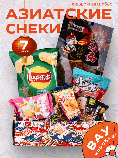 Подарочный набор азиатских снеков – это идеальный выбор для любителей экзотических вкусов и необычных чипсов. Наш набор азиатских снеков упакованы в яркую дизайнерскую подарочную коробку поэтому отлично подходит в качестве подарка. Познакомьтесь с разнообразием китайских закусок через наш подарочный бокс. Мы внимательно выбрали каждый продукт в наш азиатский бокс, чтобы предложить вам идеальное сочетание острых и традиционных закусок. Наш набор подойдет как для вечеринок, так и для уютных семейных вечеров. В набор входят: Соевое мясо и чипсы: В наш набор азиатской еды входят чипсы Lays со вкусом нори, привезенные прямо из Китая, а так же вкусное острое соевое мясо со вкусом креветки. Наслаждайтесь уникальными вкусами, которые удивят каждого. Хрустящие крекеры и сухарики: Вкусные поджаренные до золотистой корочки сухарики со вкусом томата и курицы. Такие азиатские снеки представляют собой пикантное дополнение к любому столу. Жареные орешки в панировке: отличная азиатская закуска к пиву. Лапша со вкусом краба: Попробуйте настоящую азиатскую лапшу и разнообразьте ваш обед. Этот набор снеков из Азии станет отличным дополнением к любому столу и может служить прекрасным необычным подарком для друзей и близких на любой праздник. Азиатская еда - это креативный и необычный подарок на день рождения, а так же подарок на 8 марта и 23 февраля.