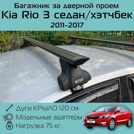 Багажник на крышу Inter Spectr за дверной проем для Kia Rio 3 седан / хэтчбек 2011 г. в. - 2017 г. в. с черными крыловидными дугами 1,2 м / Багажник на крышу Интер Спектр для Киа Рио