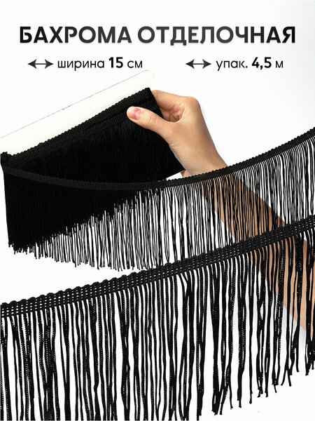 Бахрома – это декоративная отделочная тесьма, которая придает изделиям стильный и оригинальный вид. Её особенность заключается в наличии свободных нитей, петель, шнурков или других декоративных элементов, создающих эффект легкости, движения и объема. Благодаря разнообразию дизайнов, текстур и материалов, бахрома подходит как для классических, так и для современных стилистических решений. Высокая эстетичность и функциональность делают бахрому практически универсальным элементом декора. Она широко применяется в текстильной промышленности и дизайне интерьеров: используется для украшения штор, ламбрекенов, покрывал, мебельных накидок и ковров, придавая им элегантность и завершенность. В модной индустрии бахрома – популярный декоративный элемент для сценических и танцевальных костюмов, платьев, юбок, пальто, сумок, шарфов и платков. Кроме визуальной привлекательности, бахрома приятна на ощупь, мягкая и легкая, что делает её комфортной в носке и использовании. Доступна в разных цветах, длине и плотности, легко комбинируется с различными материалами, позволяя создавать стильные и эксклюзивные изделия.