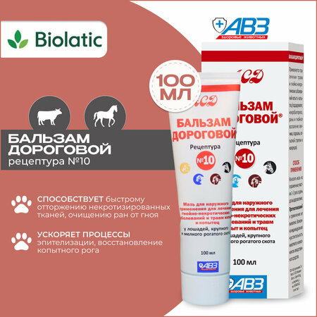 Бальзам Дороговой® № 10 — в комплексной терапии для лечения гнойно некротических заболеваний и травм копыт и копытец (пододерматит, некробактериоз, раны и гнойное воспаление венчика, подошвы, копытной стрелки и мокрецов) у лошадей, крупного и мелкого рогатого скота.