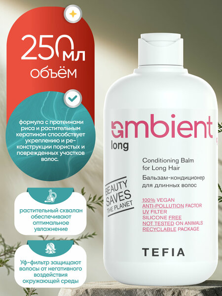бальзам кондиционер для длинных волос tefia ambient, 950мл