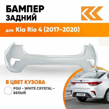 Бампер задний в цвет Kia Rio 4 (2017-2020) седан PGU - WHITE CRYSTAL - Белый
