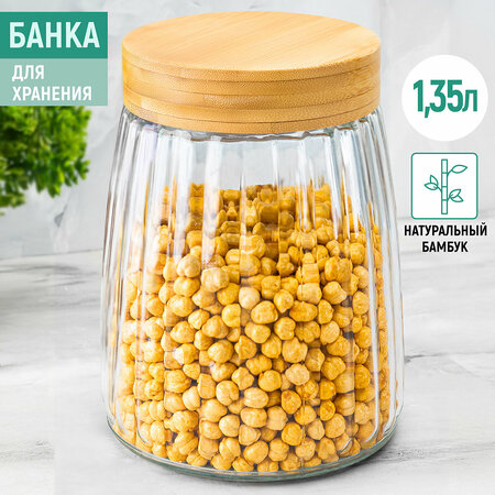 Банка для хранения сыпучих продуктов 1,35 л Elan Gallery, с бамбуковой закручивающ. крышкой, рифленое стекло