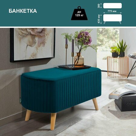 Банкетка в прихожую на ножках, пуфик в гостинную, спальню 78х38х43 см изумрудный Сон-Сервис