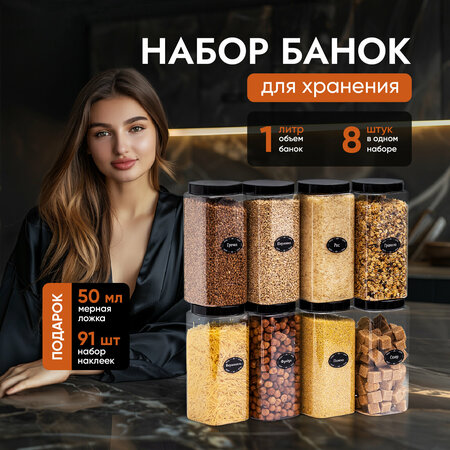 Наши квадратной формы банки для хранения - отличное решение для удобного и организованного хранения продуктов на Вашей кухне. В комплекте 8 штук. Банки имеют квадратную форму. Имеют прозрачный цвет и удобную винтовую крышку . Не откладывайте и сделайте вашу кухню более организованной с нашими удобными и эстетичными контейнерами для хранения! Что делает наши баночки для хранения такими привлекательными? Вот несколько причин, почему они должны быть в Вашей кухне: Материалы высокого качества: наши контейнеры выполнены из пищевого пластика, который абсолютно безопасен и не содержит вредных веществ. Вы можете быть уверены, что ваша еда будет храниться в безопасности. Удобный дизайн: легкий вес и компактные размеры наших банок делают их удобными в использовании , помогая максимально использовать пространство. Простота использования: каждая банка имеет наклейки с маркером, что поможет вам легко определить содержимое каждой емкости. Наклейки прочно фиксируются и не оторвутся даже при мойке контейнера. Всестороннее использование: наши контейнеры можно использовать не только на кухне для хранения пищевых продуктов (сыпучих), но и для хозяйственных нужд в ванной комнате, детской, гараже, ящиках и других помещениях. Они также отлично подходят для хранения стирального порошка, игрушек, корма для домашних животных и других мелочей. Емкости можно использовать и для выезда на пикник, для отдыха на природе, на даче. Герметичное хранение: крышки контейнеров плотно закрываются и обеспечивают герметичное сохранение продуктов. Вы можете быть уверены, что ваши продукты будут защищены от посторонних запахов, влаги и жуков-вредителей. Универсальный подарок: набор посуды будет идеальным подарком как для женщин, хозяек, так и для мужчин. Не упусти шанс приобрести набор для сыпучих продуктов прямо сейчас! Важно: Контейнеры нельзя мыть в посудомоечной машине и использовать в микроволновой печи!