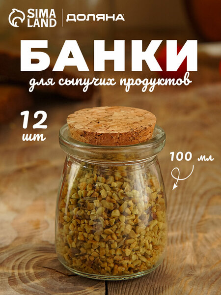 Набор стеклянных баночек для сыпучих продуктов Доляна «Парфе» представляет собой удобное и практичное решение для хранения различных сыпучих продуктов. В комплекте 12 баночек на кухню объемом 100 мл каждая, что позволяет разместить в них достаточное количество продуктов. Баночки для хранения изготовлены из прочного стекла, что гарантирует их долговечность и безопасность использования. Благодаря плотно закрывающейся пробковой крышке, продукты надежно защищены от влаги и посторонних запахов, что сохраняет их свежесть и аромат. В емкостях для хранения удобно хранить различные сыпучие продукты, такие как крупы, специи, макаронные изделия, сахар, муку и бобовые. Прозрачные стенки баночек позволяют легко определить содержимое и контролировать его количество. Набор стеклянных баночек с пробковой крышкой Доляна «Парфе» станет незаменимым помощником на вашей кухне, обеспечивая порядок и удобство хранения продуктов.