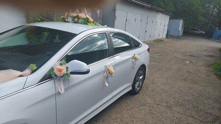Банты (являются частью набора "Нежность", "Нежность Premium", "Нежность Luxe") состоит из 4-х изящных свадебных украшений на авто. Банты с цветами, сделаны из высококачественных материалов, состоят из искусственной головки розы нежного персикового цвета, фатина, атласных лент. Крепятся на ручки и зеркала с помощью атласных лент, крепление надежное и гарантировано не испортит покрытие вашего автомобиля. Подойдут для оформления авто, помещений. Полный набор состоит из следующих составляющих: - Нежность: 1. Кольца на крышу автомобиля; 2. Лента на капот; 3. Банты на ручки и зеркала автомобиля. - Нежность Premium: 1. Кольца на крышу автомобиля Premium; 2. Малый букет на капот с фатином; 3. Банты на ручки и зеркала автомобиля. - Нежность Luxe: 1. Кольца на крышу автомобиля Premium; 2. Большой букет на капот; 3. Банты на ручки и зеркала автомобиля.