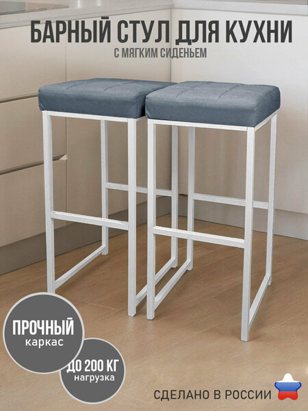 Барный стул в стиле лофт с мягким сиденьем - стильное и комфортное решение для вашего дома. Станет элегантным дополнением к интерьеру и привнесёт в него изысканность. Стул идеально подойдёт для кухни, будет полезен в гардеробной, кладовой, прихожей и на балконе, прекрасный дачный вариант мебели. Прочный белый металлический каркас табуретки способен выдержать нагрузку до 200 кг. Квадратное сидение высокого стула без спинки выполнено из износостойкой мебельной ткани, что делает изделие долговечным в использовании. Ножки защищены заглушками, чтобы предотвратить появление царапин на полу. Вес всего 5 кг, что облегчает транспортировку и установку. Поставляется в коробке и не требует сборки и инструментов. В комплекте набор из 2 шт. Обратите внимание, цвет обивки может незначительно отличаться от представленного на фотографии из-за различий в цветопередаче мониторов и партии поставляемой ткани.