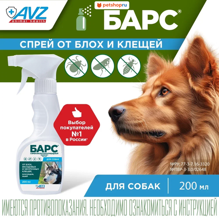 АВЗ Спрей БАРС для обработки собак от блох и клещей