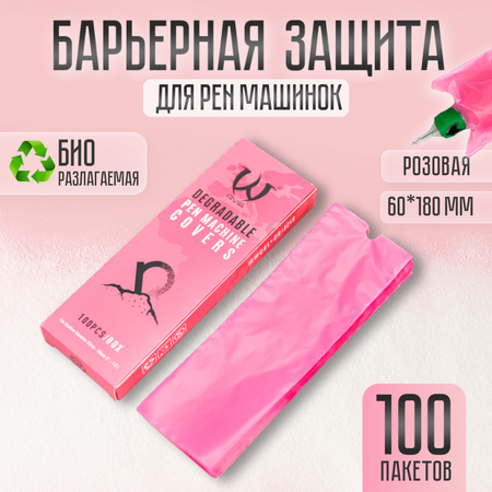 Барьерная защита для тату машинки Pen 60*180 мм, биоразлагаемая розовая 100 шт