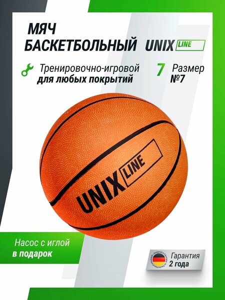 Баскетбольный мяч UNIX Line размер № 7 уличный, для баскетбола тренировочный с насосом в комплекте