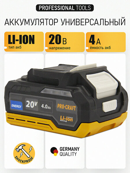 Аккумулятор для инструмента PROCRAFT BAT20/4 Energy Li-Ion 20В 4Ач батарея аккумуляторная с индикацией заряда
