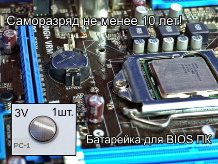 1шт. Батарейка для BIOS ПК 3V Элемент питания для биоса материнских плат компьютера. Универсальная для всех ПК. Саморазряд не менее 10 лет!